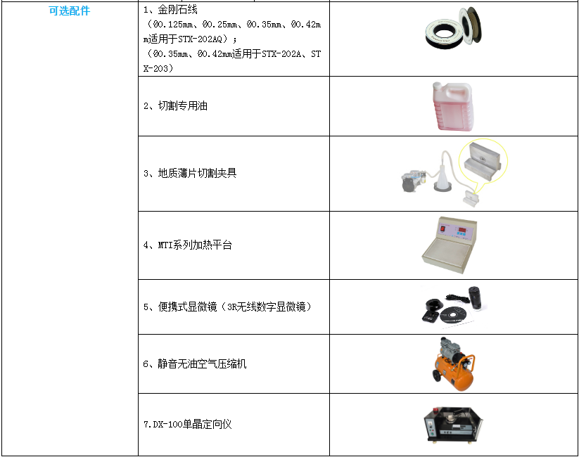 注:材料硬度小于金刚石线的均可进行精密切割。标准配置: